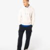 85% coton biologique, 15% polyester recyclé post-consumer. Coton peigné. Lavé aux enzymes. French Terry. Molleton non gratté 3 fils LST (Low Shrinkage Terry : molleton pré-rétréci). Ceinture élastiquée. Cordon de serrage plat avec embout en plastique recyclé, mat ton sur ton. Œillets brodés. Fausse braguette. Doubles surpiqûres fourche devant et dos pour plus de maintien. Poches côtés devant, poches goussets latérales plaquées sur les côtés du vêtement avec rabats. Poches plaquées dos. Ourlet bas de jambe double surpiqûres. Vêtement teint après montage : les couleurs peuvent légèrement varier d’une pièce à l’autre. Ce produit est susceptible de déteindre au contact avec des surfaces ou vêtements clairs.