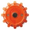 Lampe d’urgence LED 5 modes : fixe, lumière Ă l’extrĂ©mitĂ©, alternĂ©e, vacillante et clignotant. bouton marche /arrĂŞt, coque partiellement caoutchoutĂ©e avec aimant et crochets Ă l’arrière.