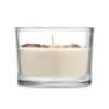 Bougie en cire végétale parfumée avec des fleurs et des fruits séchés dans un pot en verre. 300 gr. Durée de combustion : 50 heures. Senteur cannelle et ciron.