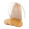Set de 6 sous-verres ronds en bambou dans une pochette en coton avec cordon de serrage. Matieres : : Bambou , Coton.