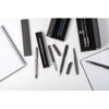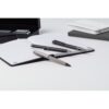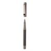 Élégant ensemble stylo à bille et stylo roller en métal, avec corps à motif carbone et des finitions en bronze. Dans une boîte cadeau motif carbone, encre bleue. Matieres : : Métal.