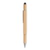 Stylo niveau à bulle en bambou avec règle de 7 cm, stylet et embouts de tournevis à tête cruciforme et plate. Encre bleue. Le bambou est un produit naturel, et présente de légères variations de couleur, de décoration et de tailles.