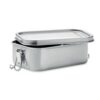 Lunchbox en acier inoxydable avec de solides boucles latérales assurant une parfaite fermeture. Capacité 750 ml.