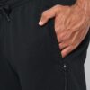 65% polyester / 35% coton. Molleton gratté. Ceinture élastiquée avec cordon de serrage ton sur ton. Pour plus de confort, finition intérieur taille par bande élastique au toucher doux, contrastée avec liseré fluorescent. 2 poches côtés fantaisie avec fermeture à glissière, sac de poche en maille filet et une poche téléphone contrastée fluorescente. 1 poche plaquée arrière. Bas de jambe resserré par un bord-côte 2 x 2.