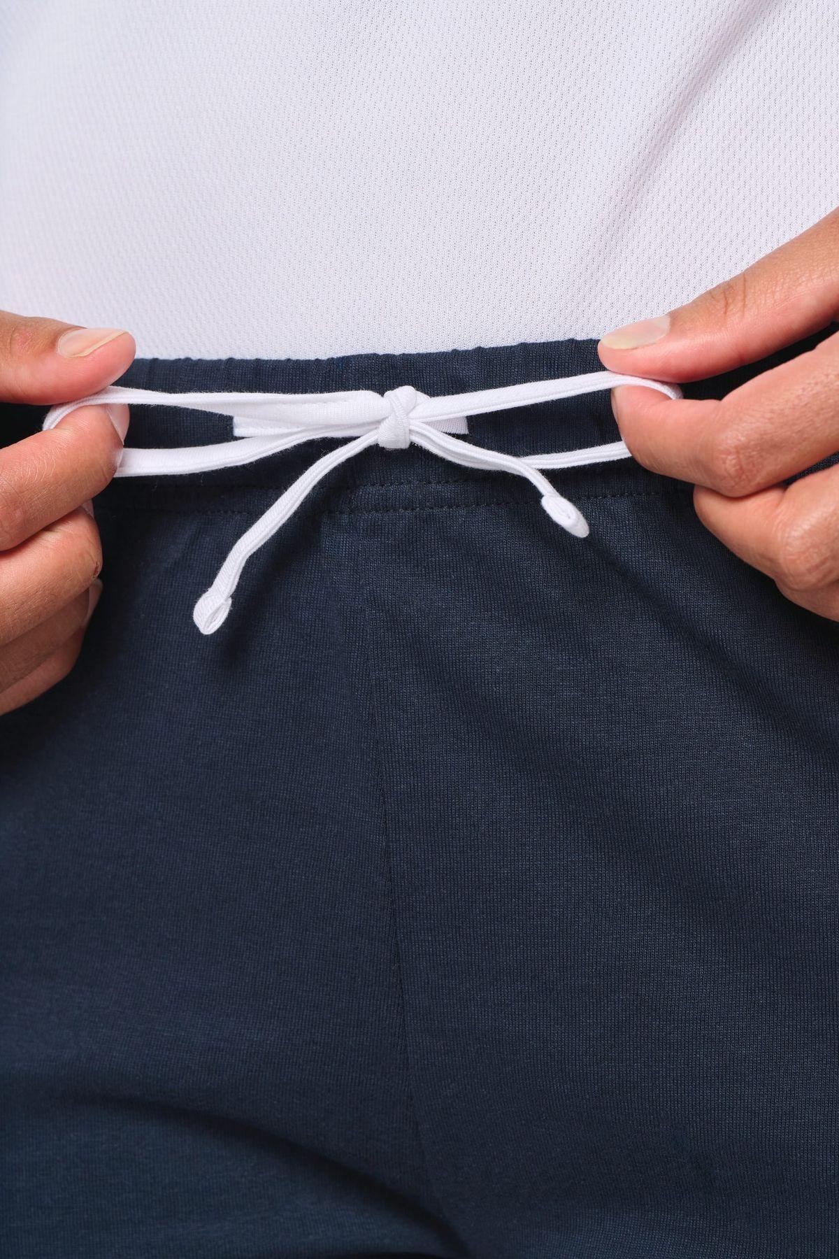 100% coton. Coloris Grey Heather : 65% polyester / 35% coton. Maille jersey. Biais de finition et cordon de serrage contrastés. Taille élastiquée.