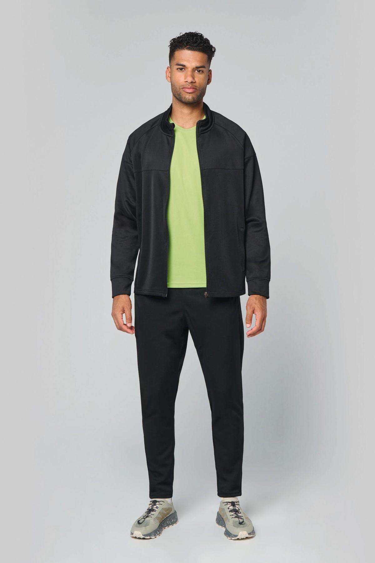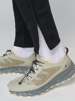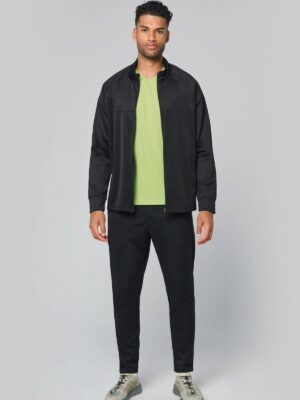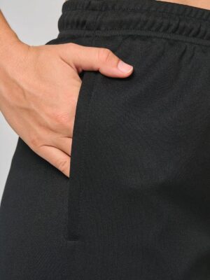 96% polyester recyclé / 4% élasthanne. Coupe droite. 2 poches côtés zippées. Ceinture élastiquée avec cordon de serrage rond et embout caoutchouc placé à l’intérieur de la ceinture. Découpe sur le bas de jambe avec inserts en tissu texturé sur le côté. Bas de jambe zippés avec ourlet double aiguille. Etiquette de marque détachable pour faciliter la personnalisation.