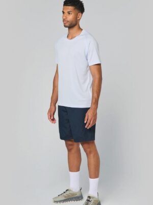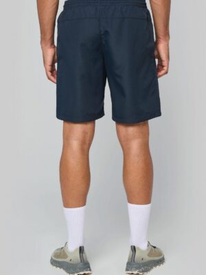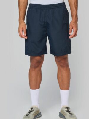 100% polyester à séchage rapide. 2 poches côtés. Taille élastiquée avec cordon de serrage. Slip intégré en maille filet. Découpe côté ton sur ton.