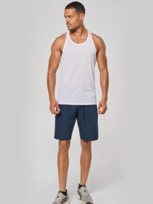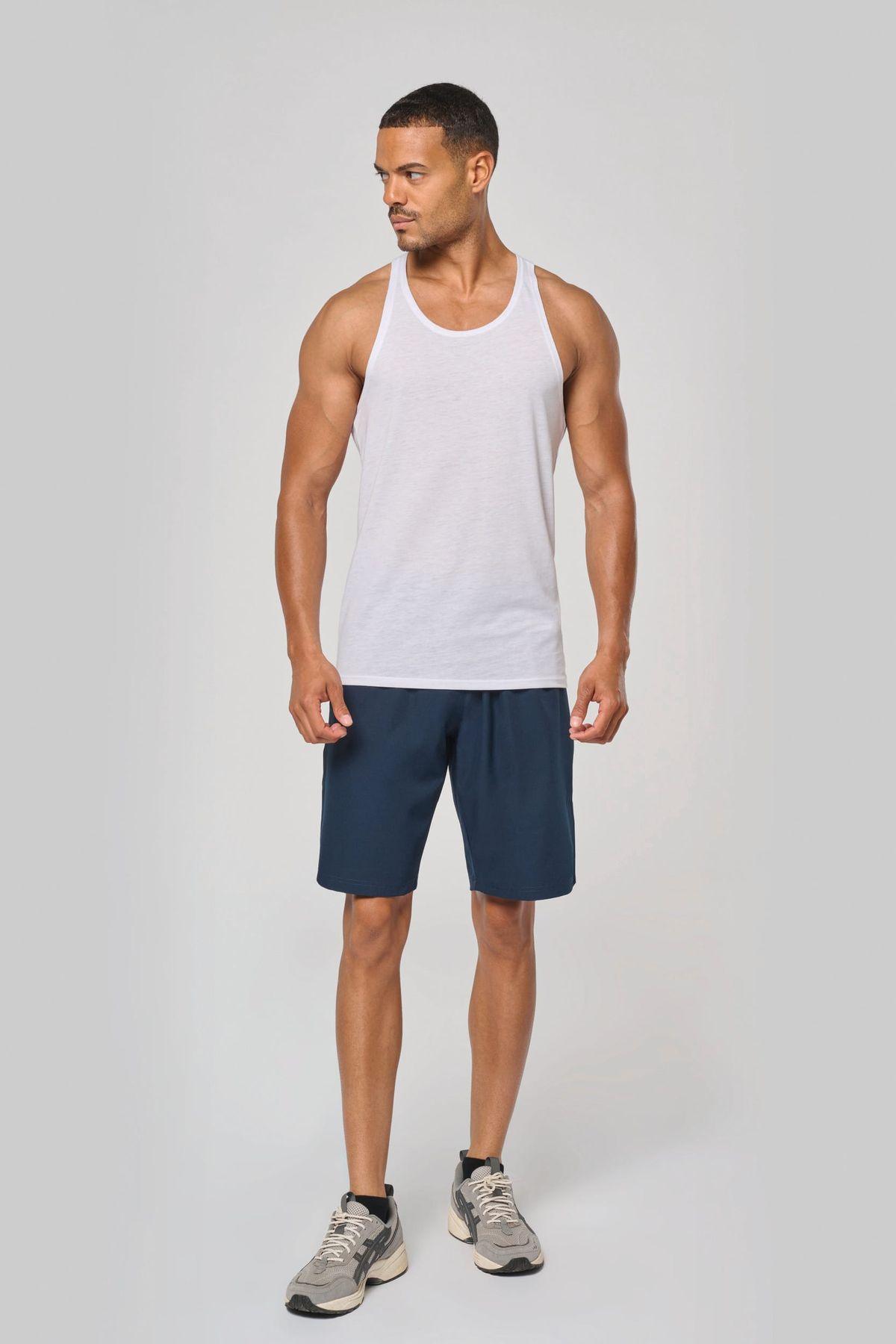 94% polyester / 6% élasthanne. Matière très souple et confortable. 2 poches profondes devant. Taille élastiquée avec cordon de serrage.