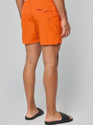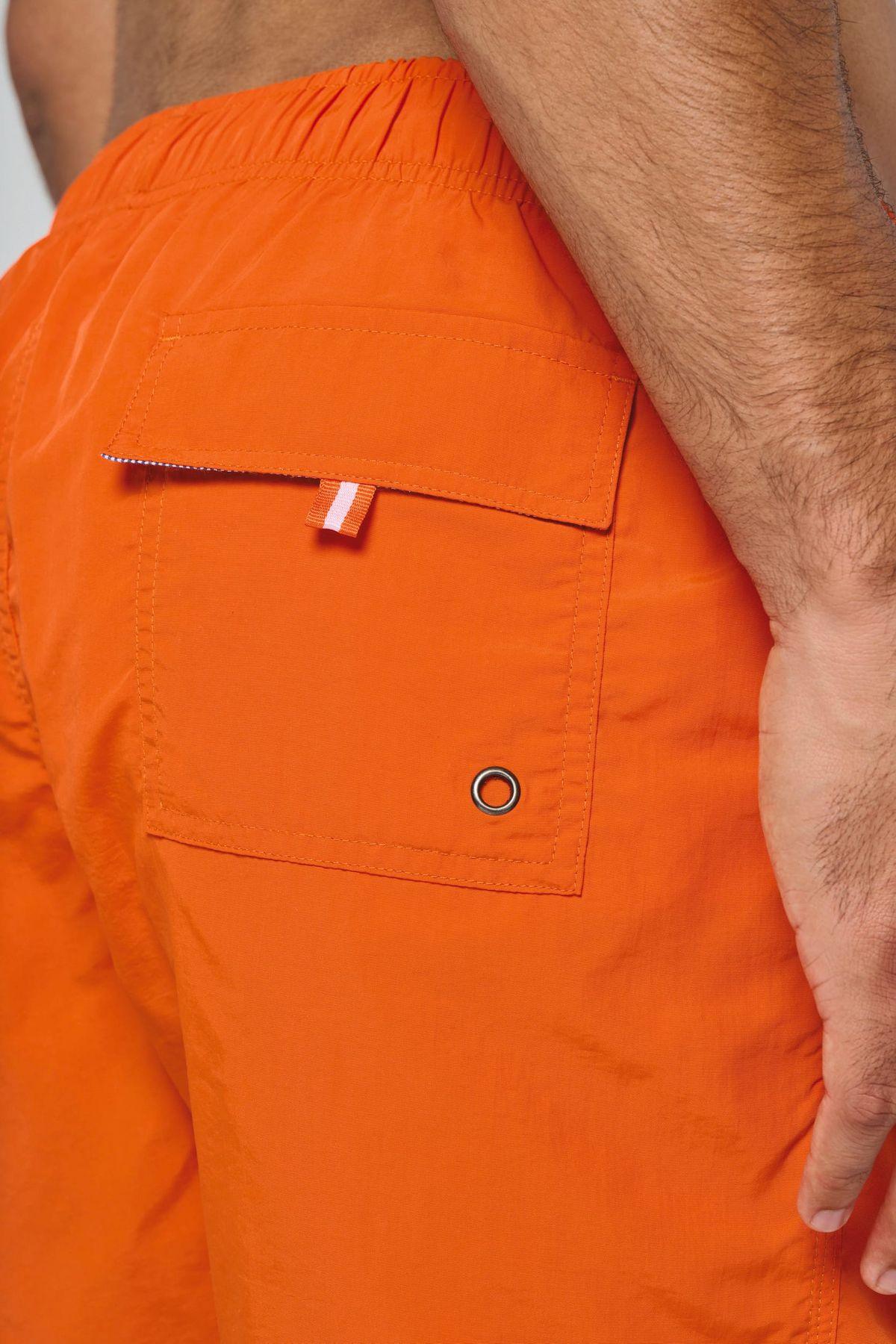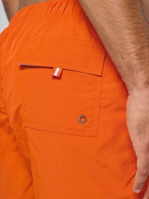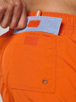 Extérieur : 100% polyamide 105g/m². Slip intégré en maille filet 100% polyester 65g/m². Doublure ceinture polycoton 80g/m². Tissu léger. Coupe mode. 2 poches latérales et 1 poche arrière avec oeillet, rabat et bande auto-agrippante. Ceinture intérieure fantaisie et élastiquée avec cordon de serrage.