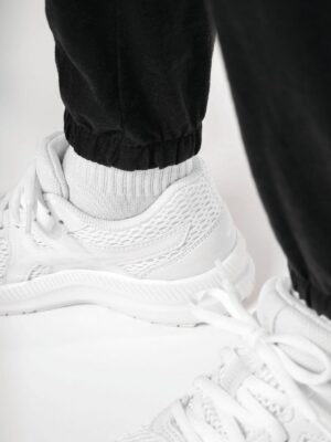 100% coton (Oxford grey : 90% coton / 10% viscose). Tissu souple et léger. Ceinture élastiquée avec cordon de serrage intérieur + cordon gris extérieur interchangeable. 2 poches côtés et 1 poche arrière. Bas élastiqué.