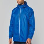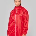 100% polyester mat 210T enduction PU. Tissu imperméable 1500 mm. Coutures thermosoudées étanches aux épaules et capuche. 2 poches zippées côtés et tire-zip. 2 poches intérieures. Fermeture devant par zip contrasté. Capuche réglable avec stoppeurs dans le col avec patte auto-agrippante. Bas de manches élastiqués. Etiquette de marque détachable.