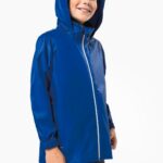 100% polyester mat 210T enduction PU. Tissu imperméable 1500 mm. Coutures thermosoudées étanches aux épaules et capuche. 2 poches zippées côtés et tire-zip. 2 poches intérieures. Fermeture devant par zip contrasté. Capuche dans le col avec patte auto-agrippante. Bas de manches élastiqué. Etiquette de marque détachable.