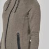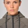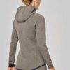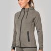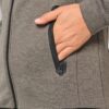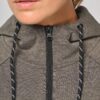 94% polyester/ 6% élasthanne (79% polyester/ 15% viscose/ 6% élasthanne pour coloris chiné). Matière ultra confortable. Fermeture zippée. 2 poches avant zippées finition thermosoudée. Capuche doublure jersey 65% polyester/ 35% viscose avec cordon de serrage bicolore finition embout plastique. Bas de manches resserrés avec une partie élastiquée contrastée. Bas de vêtement finition biais contrasté. Bas de manches resserrés avec une partie élastiquée contrastée et bas de vêtement finition biais contrasté Black sur tous les coloris et Dark Grey sur le Ash Heather (fermetures aussi).