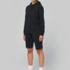 65% polyester / 35% coton. Fil Vortex. Molleton gratté. Coton peigné. Coupe ajustée. Manches raglan. Capuche doublée en maille filet ton sur ton. Bande de propreté à l’intérieur de la capuche, œillets du cordon de la capuche et points d’arrêts sur les poches en coloris fluorescent. Poches kangourou avec 1 poche pour téléphone fluorescente. Poignets et bas de vêtement en bord-côte double épaisseur 2×2. Finition demi-lune encolure au dos pour faciliter la personnalisation de marque à l’intérieur. Etiquette de marque Tear-away.