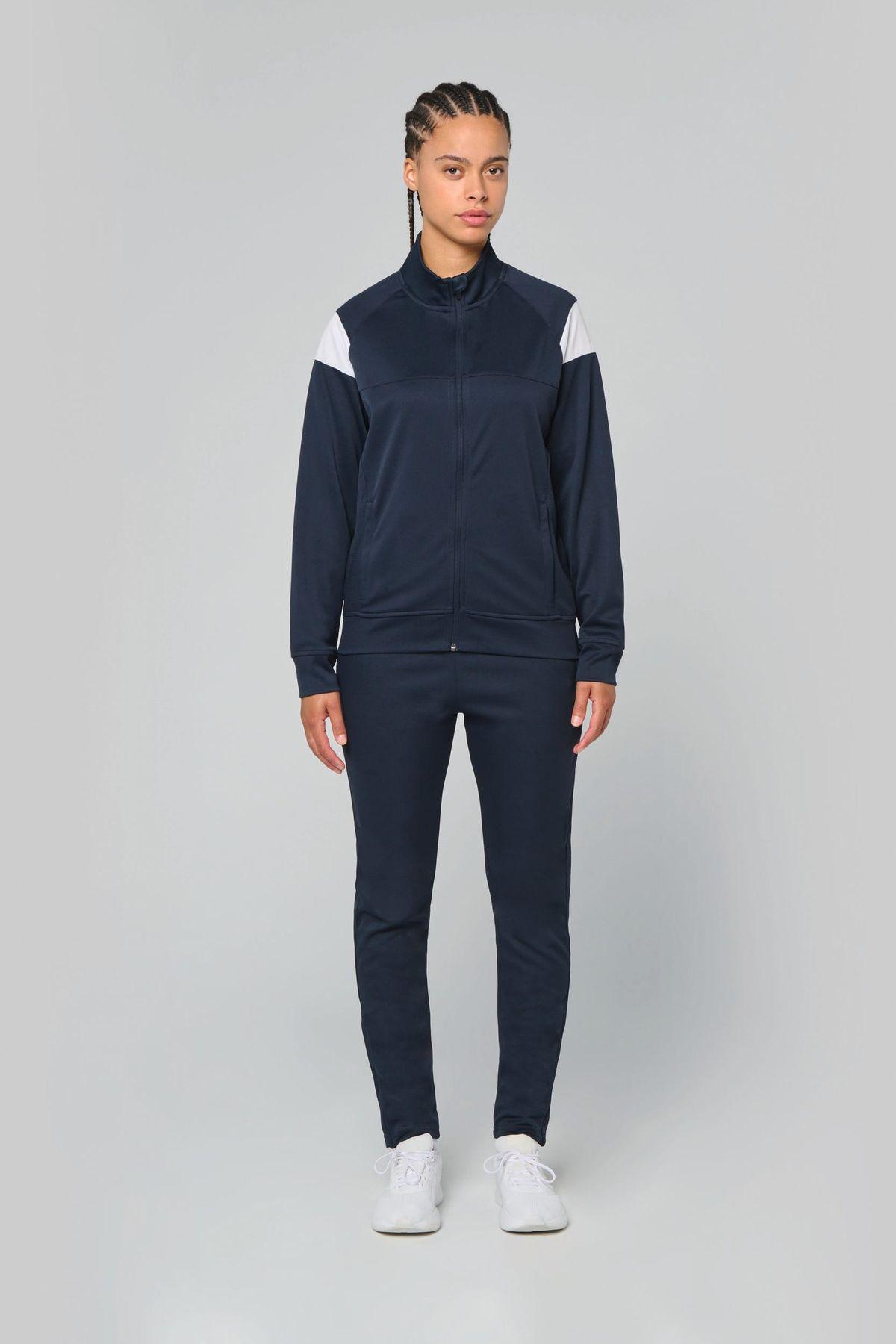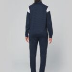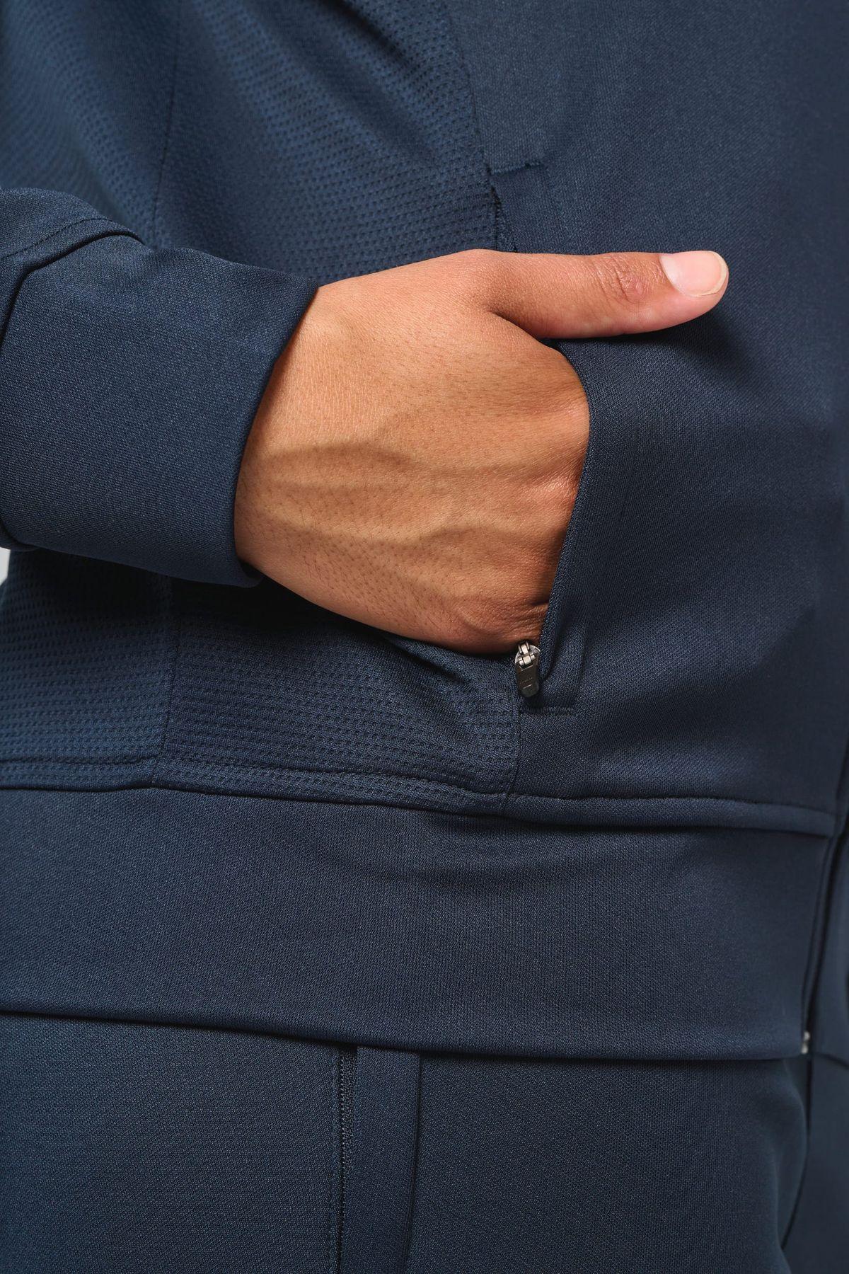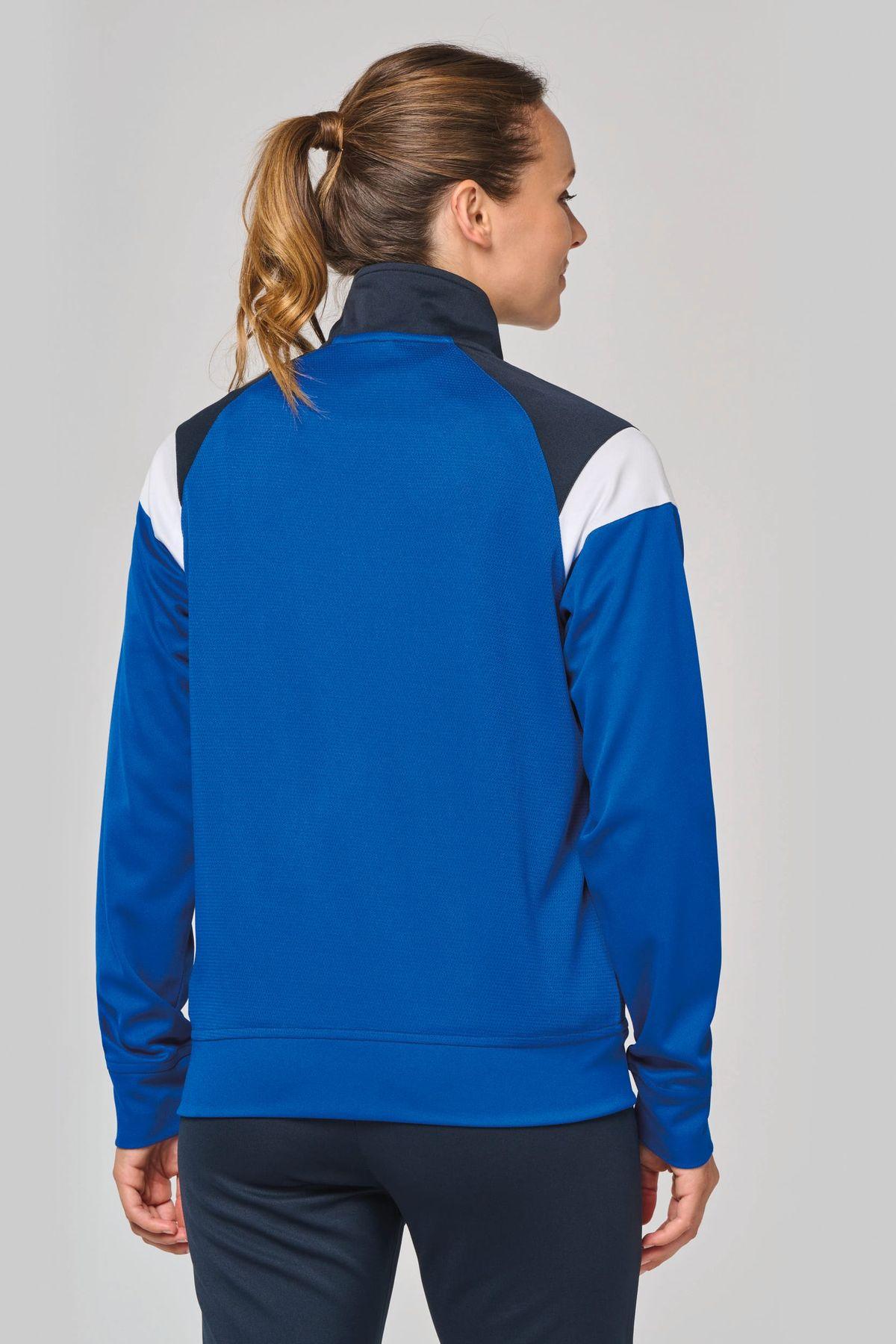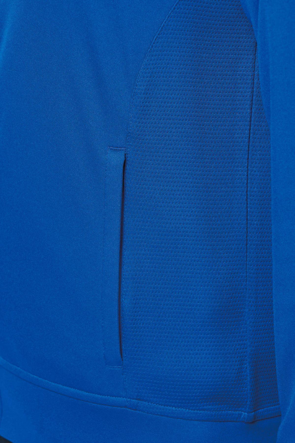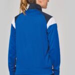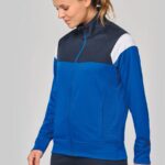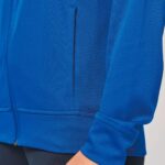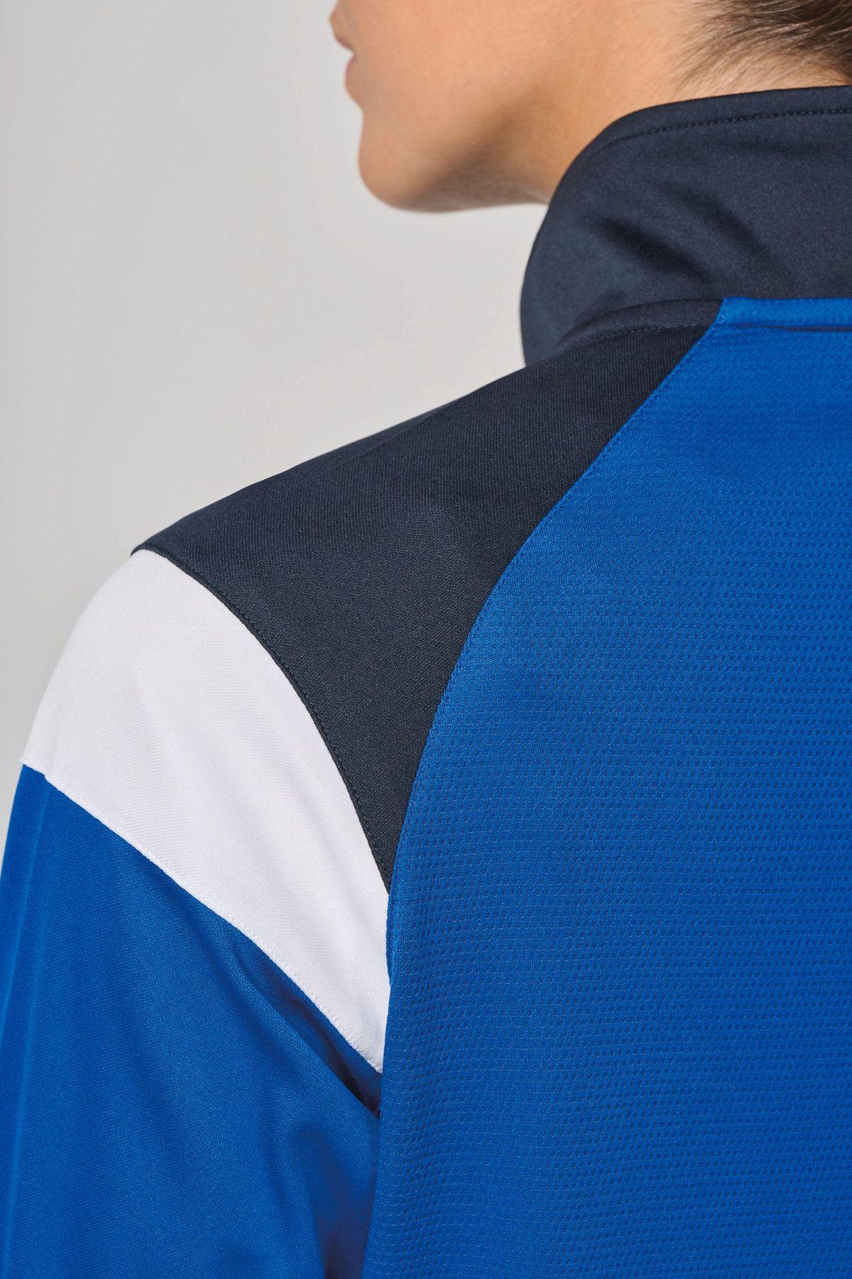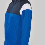 100% polyester interlock mat. Coupe droite. Fermeture devant avec zip inversé en nylon ton sur ton. Manches raglan avec inserts contrastés épaule. Découpe poitrine et épaule contrastée. 2 poches zippées à l’avant. Inserts en tissu texturé sur les côtés et dans le dos. Couvre zip en haut du col pour plus de confort. Etiquette de marque détachable pour faciliter la personnalisation.