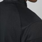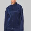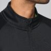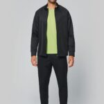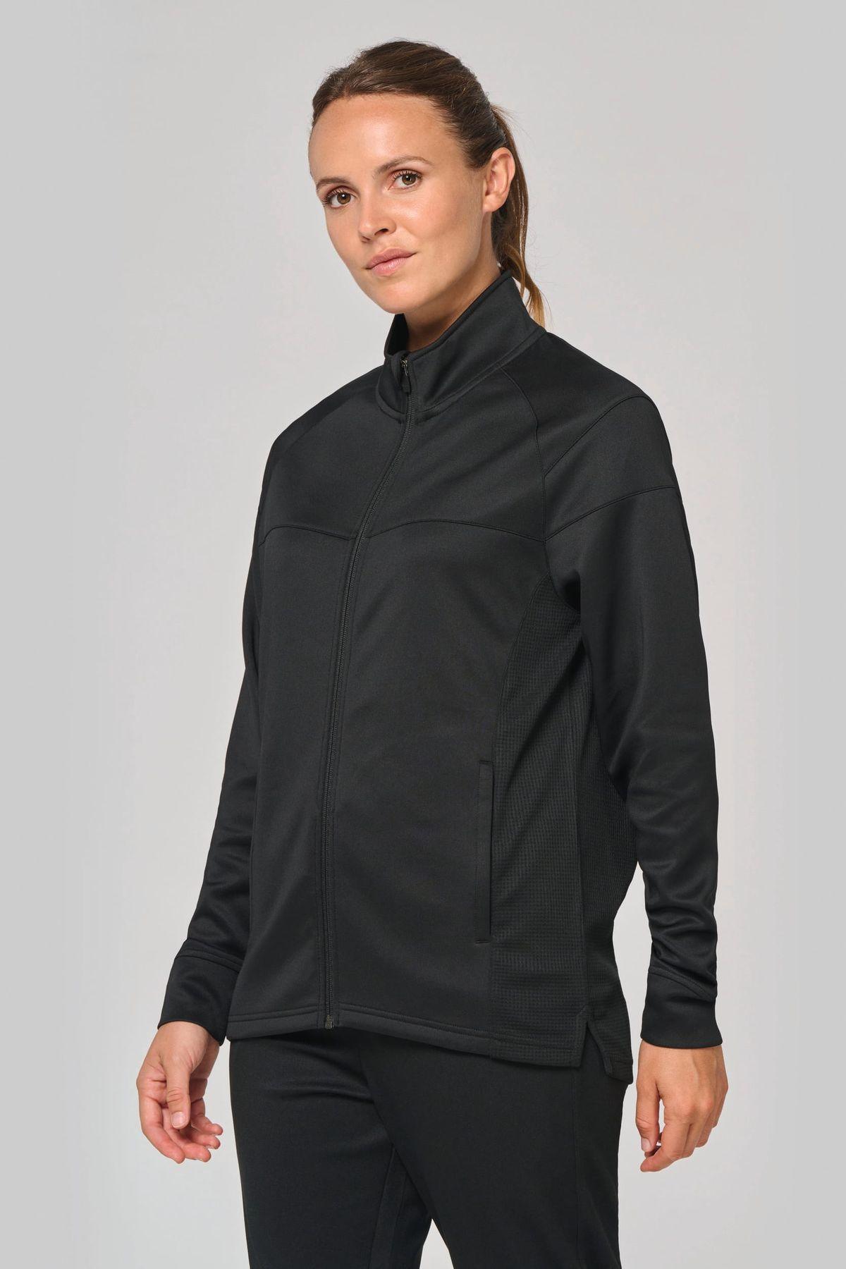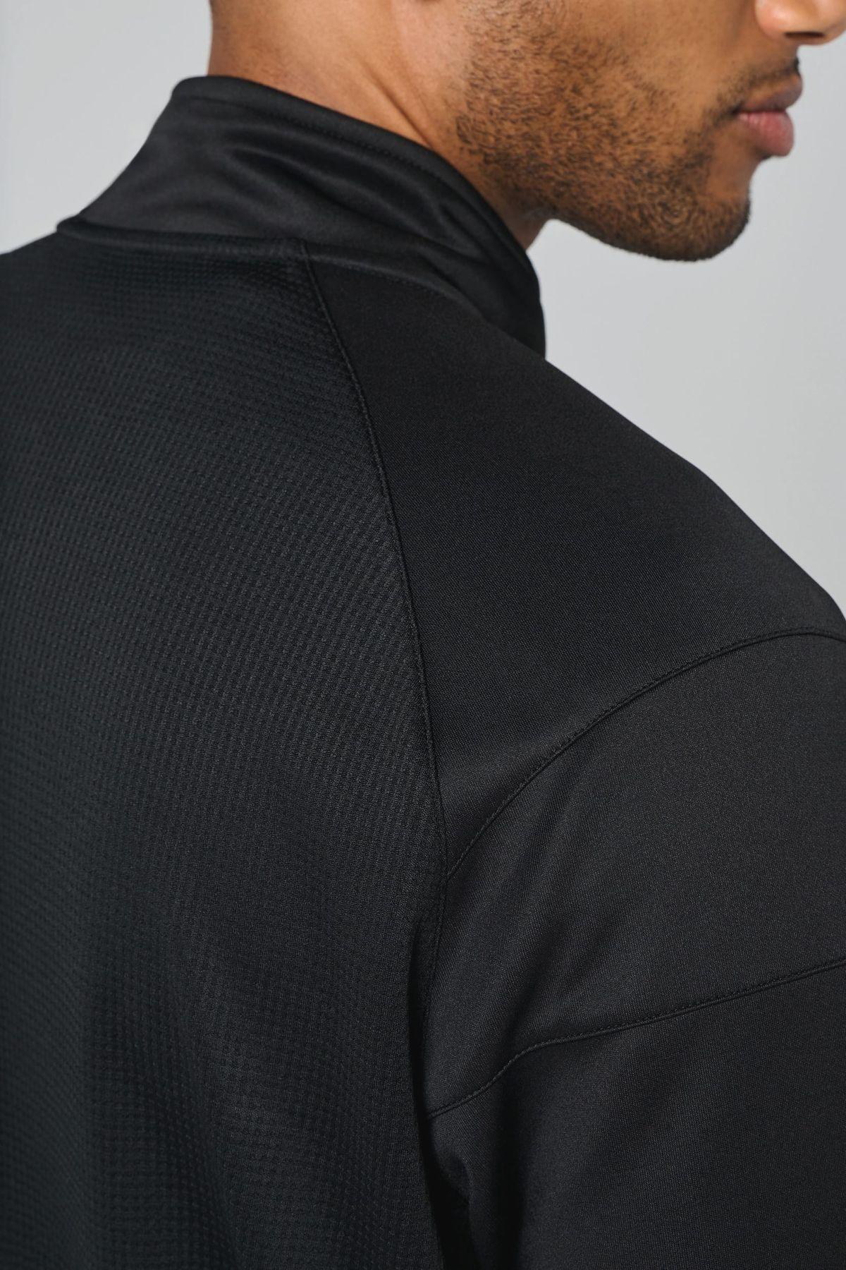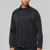 96% polyester recyclé / 4% élasthanne. Coupe droite. Fermeture devant avec zip inversé en nylon recyclé ton sur ton. Manches raglan avec découpes épaule. Bas de manches en tissu principal. 2 poches zippées à l’avant. Tissu texturé ton sur ton sur le côté et dans le dos. Couvre zip en haut du col pour plus de confort. Ourlet bas de vêtement. Dos rallongé et fentes latérales d’aisance. Etiquette de marque détachable pour faciliter la personnalisation.