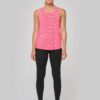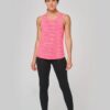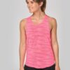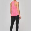 65% polyester / 35% viscose – Maille jersey fluide à effet flammé. Coupe ample. Grandes emmanchures et dos nageur. Encolure ronde avec bande de propreté. Bas légèrement arrondi.
