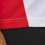 100% polyester birdseye recyclé post consumer. Tissu léger à séchage rapide. Coupe ajustée. Encolure ronde avec bande de propreté. Manches montées. Découpes épaules, manches, dos. Partie en biais à l’avant contrastée. Finition double aiguille au bas de manches et de vêtement. Etiquette de marque détachable.