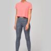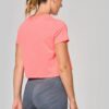 50% polyester / 25% coton / 25% viscose. Tissu jersey. Traitement antiboulochage. Col rond. Coupe droite. Crop top. Bande de propreté ton sur ton à l’encolure. Finition double aiguille bas de manches et de vêtement. Finition tubulaire à l’ourlet bas de manches. Pas d’étiquette de marque, uniquement une puce de taille pour faciliter la personnalisation.