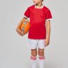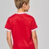 100% polyester. Maille interlock. Coupe droite. Coupé cousu. Encolure ronde en côte 1×1 contrasté blanc pour tous les coloris avec insert en interlock ton sur ton. Bas de manches en bord-côtes 1×1 contrasté blanc pour tous les coloris. Bande de propreté en interlock ton sur ton. Coutures renforcées double aiguille emmanchures, épaules et côtés du vêtement. Finition double aiguille au bas de vêtement. Etiquette de marque détachable.
