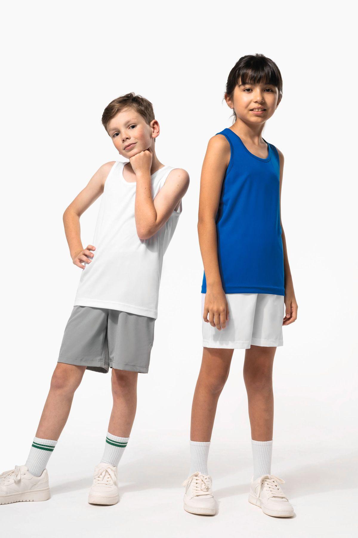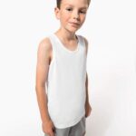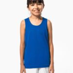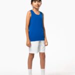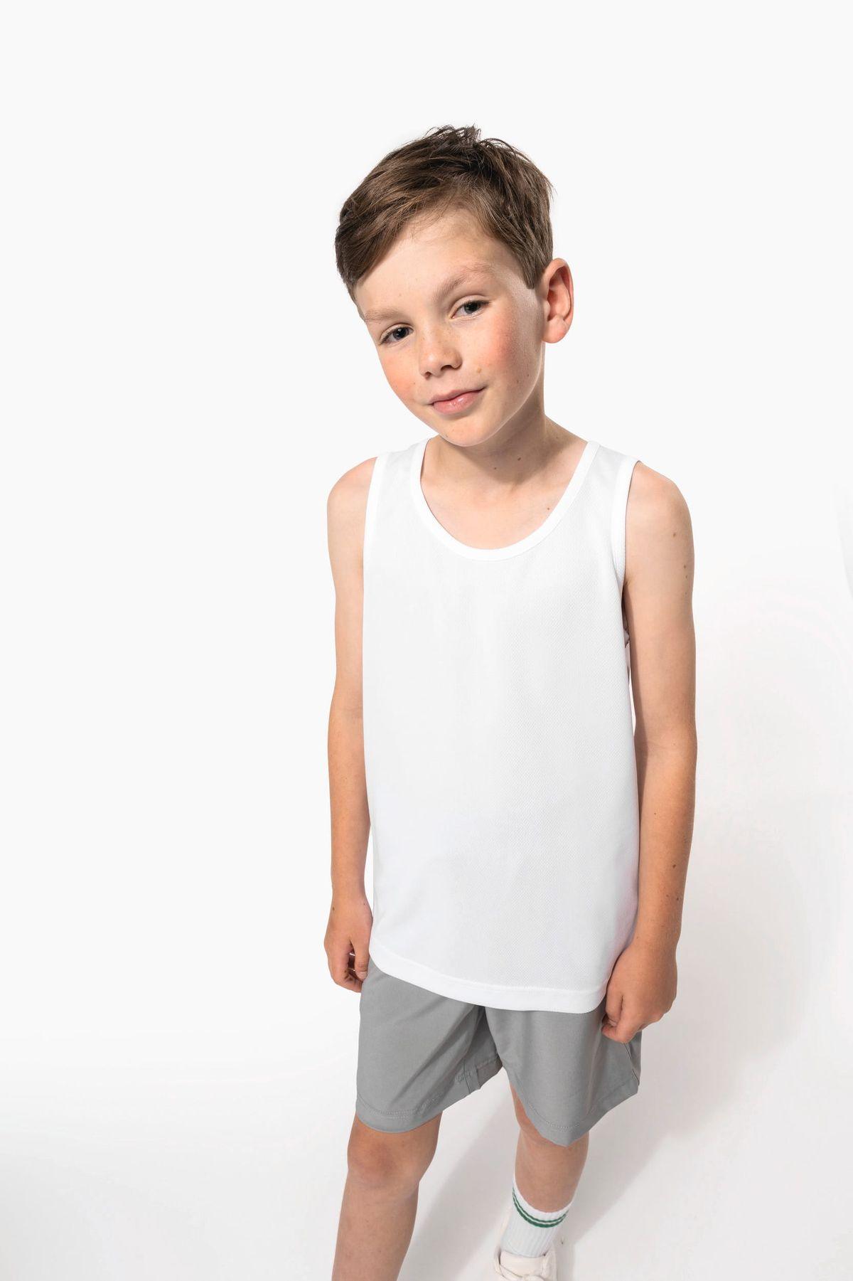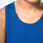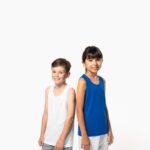 100% polyester birdseye. Tissu léger à séchage rapide. Biais à l’encolure et aux emmanchures. Finition double aiguille au bas de vêtement. Etiquette de marque détachable.