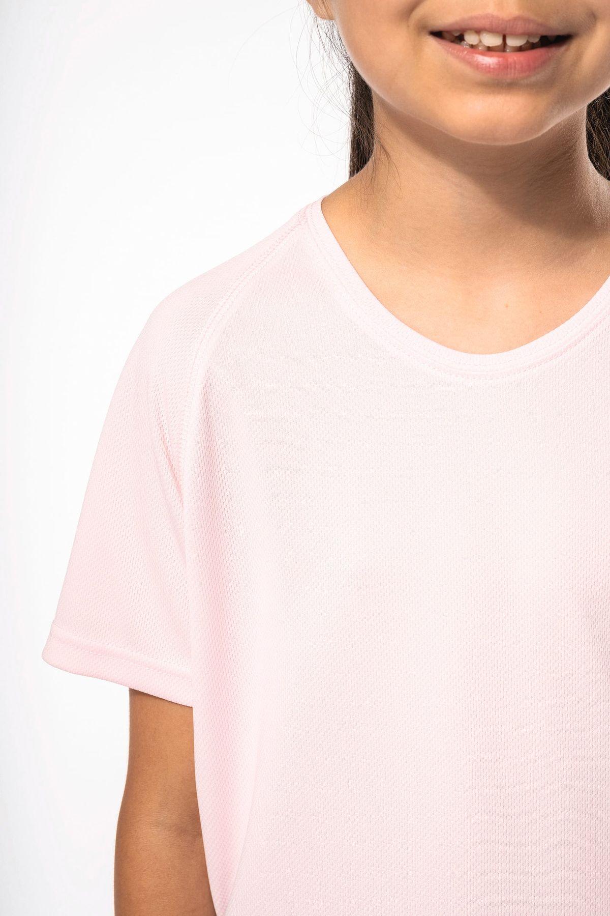 100% polyester. Tissu léger à séchage rapide. Encolure ronde avec bande de propreté. Manches raglan avec points de recouvrement. Finition double aiguille à l’encolure, bas de manche et de vêtement.