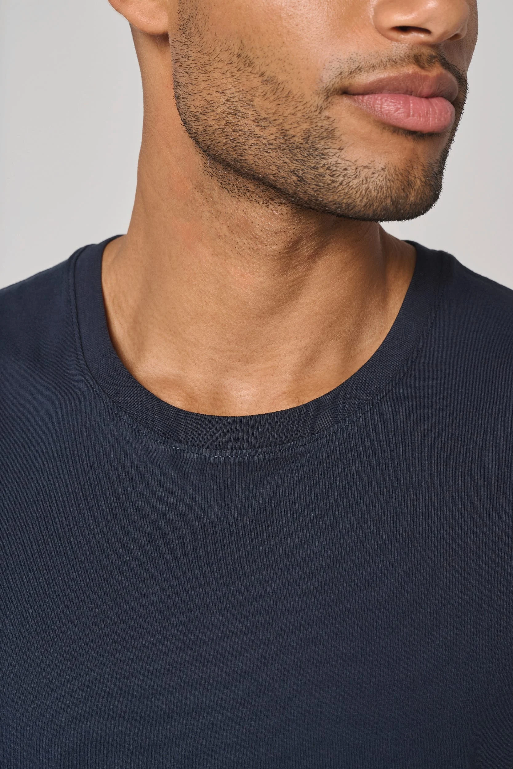 100% coton. Oxford Grey : 90% coton / 10% viscose. Coton peigné. Jersey doux. Traitement anti-boulochage. Lavable à 40°C. Coupe droite. Col rond avec bord-côté 1×1 et bande de propreté ton sur ton. Ouverture emmanchures larges à bord franc. Finition double aiguille bas de vêtement. Pas d’étiquette de marque au col, uniquement une puce de taille pour faciliter la personnalisation.