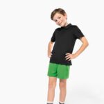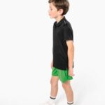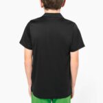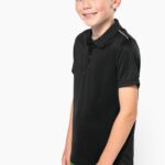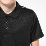 100% polyester interlock. Tissu à séchage rapide. Col en bord-côte. Patte de boutonnage 3 boutons. Bande de propreté contrastée au col et sur fentes latérales. Passepoil contrasté aux épaules. Finition double aiguille bas de manches et de vêtement.