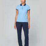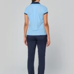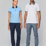 100% polyester. Maille piquée Cool Plus®. Coupe cintrée et look moderne. Col et bas de manche en bord-côte contrasté. Patte de boutonnage 4 boutons (contrastés ou unis selon modèle). Fentes latérales.