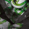 100% polyester. Construction mixte toile ajourée pour séchage rapide des ballons et polyester enduction PVC. Sangle épaule en polypropylène ajustable et cordon de serrage en haut du sac pour fermeture.