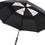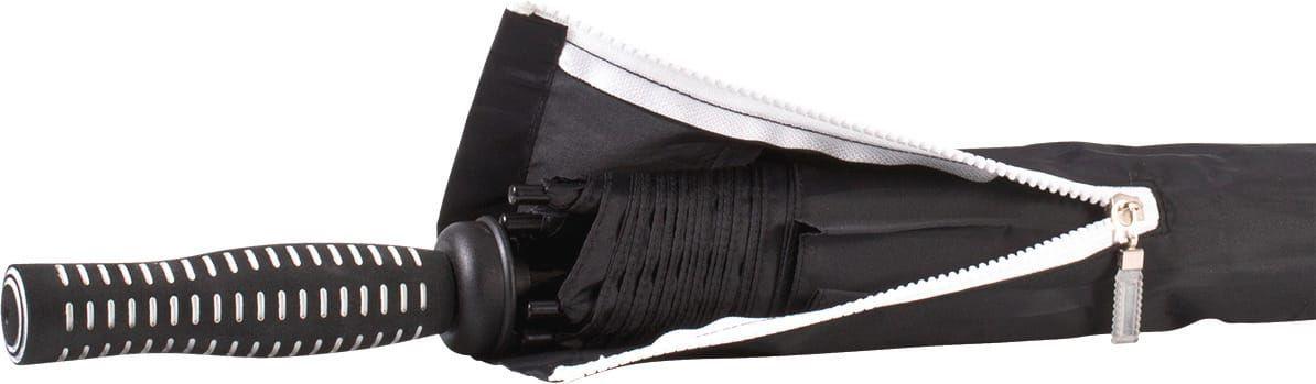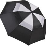 Parapluie de golf 29,5 ” (diamètre : 130 cm), ouverture manuelle avec curseur de sécurité. Mât et baleines en fibres de verre, embouts de baleine en polypropylène. Toile en polyester 210T avec double voilure bicolore anti rafale sur le haut. Poignée ergonomique et antidérapante. Housse zippée de couleur contrastée.