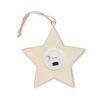 Étoile décorée en MDF avec lumière LED à l’intérieur, ornements de Noël et cordon de suspension. 3 piles LR44 incluses.