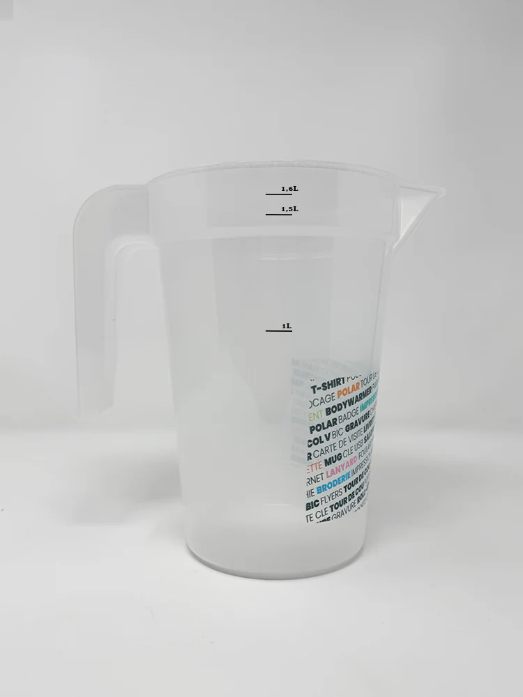 ? Personnalisation sur-mesure : nous imprimons votre logo, nom d’entreprise ou visuel directement sur le pichet pour une visibilité optimale de votre marque.