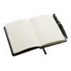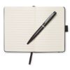 Carnet A6 avec stylo. Couverture rigide en PU. 144 pages lignées (72 feuilles). Bande élastique de fermeture et porte-stylo assortis. Stylo à bille à bouton-poussoir en métal assorti. Encre bleue. FSC MIX CREDIT | P7.1 | FSC-C213206