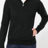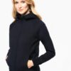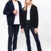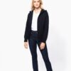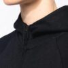 70% coton / 26% polyester / 4% élasthanne. Coton peigné. Tissu interlock. Traitement LSI (Low Shrinkage Interlock). Capuche 2 panneaux, doublée dans le même tissu que le reste de la veste, pas de cordon. Surpiqûres au col. Bande de propreté sur l’encolure intérieure. Zip nylon ton sur ton avec zipper métal et finition bande de propreté à l’intérieur. Manches raglan. Rib 1×1. 2 poches prisent dans la couture de l’empiècement. Pas d’étiquette de marque, uniquement une puce de taille pour faciliter la personnalisation.