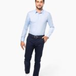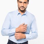 100% coton biologique. Tissu popeline. Col français avec baleines amovibles. Boutons en nacre. Empiècement haut du dos. Poignées à angles droits à 2 boutons. Hirondelles sur les côtés. Pas d’étiquette de marque, uniquement une étiquette de taille pour faciliter la personnalisation.