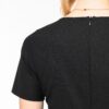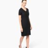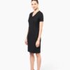 50% polyester / 23% viscose / 22% laine / 5% élasthanne. Doublure 100% polyester stretch uniquement sur le corps. Découpe princesse avec empiècement à piqûre nervure qui aplati la couture et la renforce. Encolure en V avec finition intérieure doublée. Fermeture zippée invisible dans le dos. 2 pinces taille dans le dos. Fente d’aisance au bas du dos. Doublure volante avec fente. Pas d’étiquette de marque, uniquement une puce de taille pour faciliter la personnalisation.