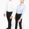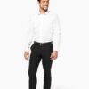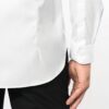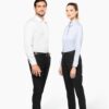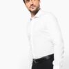 100% coton. Tissu twill. Entretien facile (traitement Easy care). Fil double retors 80×2 de qualité supérieure. Col Italien avec baleines amovibles. Boutons en nacre. Empiècement haut du dos. 2 pinces dans le dos. Coupe ajustée. Poignées 2 boutons à angles arrondis. Hirondelles sur les côtés. Pas d’étiquette de marque, uniquement une étiquette de taille pour faciliter la personnalisation.