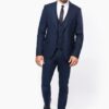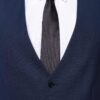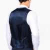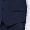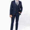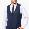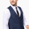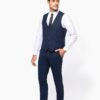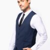 50% polyester / 23% viscose / 22% laine / 5% élasthanne. Autre matière en twill (100% polyester) ton sur ton sur extérieur dos et intérieur de vêtement. Coupe ajustée. Gilet fermée à quatre boutons ton sur ton et un bouton supplémentaire à partir de la taille 58. Deux poches passepoilées devant. Patte ajustable au dos avec boucle métal. Couture milieu dos avec finition en fente en V en bas de vêtement. Pas d’étiquette de marque, uniquement une puce de taille pour faciliter la personnalisation.