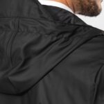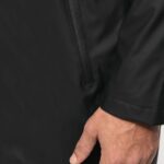 100% enduction polyuréthane couche extérieure et 100% polyester couche intérieure. Coutures thermosoudées. Imperméable 5000 mm. Doublure 100% polyester. Capuche avec visière et cordon de serrage, stopper finition métal. Fermeture zippée reverse imperméable jusqu’au col, avec cache zipper en haut. 2 poches latérales avec fermeture éclair imperméable et cache-zipper. Œillets d’aération au niveau des aisselles. Dos plus long, doté d’une fente d’aisance en bas. Loop à l’intérieur du col pour accroché la veste. Patch de personnalisation à l’intérieur sur le haut du dos. Zips de personnalisation à l’intérieur, bas du dos et côté cœur. Pas d’étiquette de marque, uniquement une puce de taille pour faciliter la personnalisation.