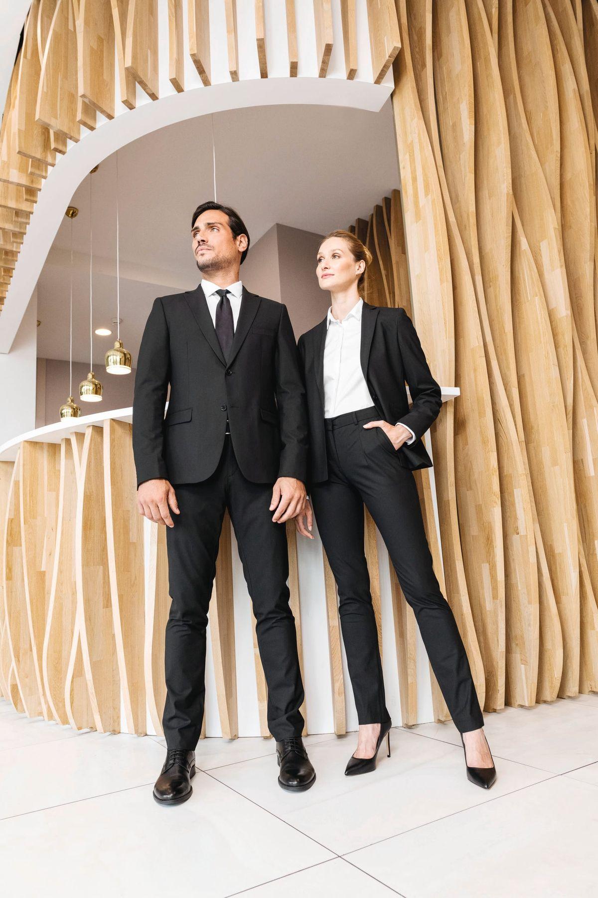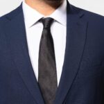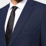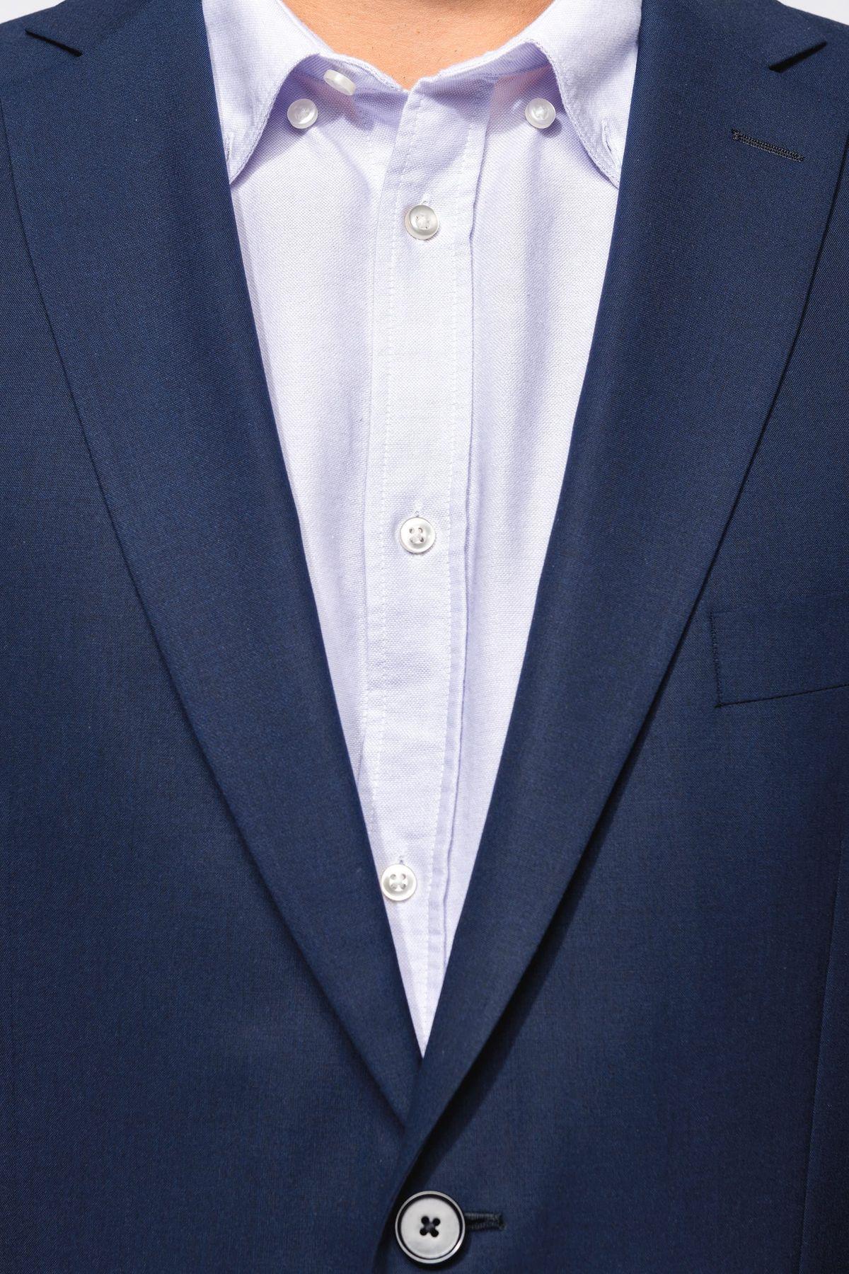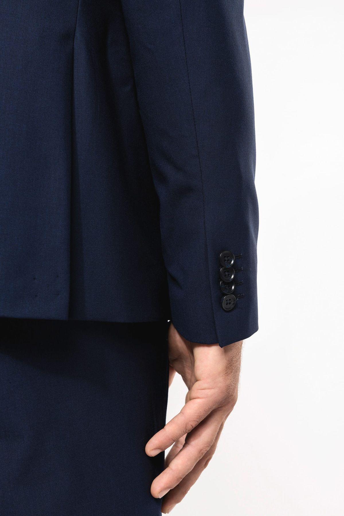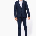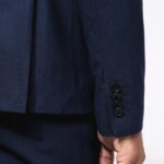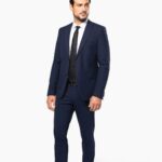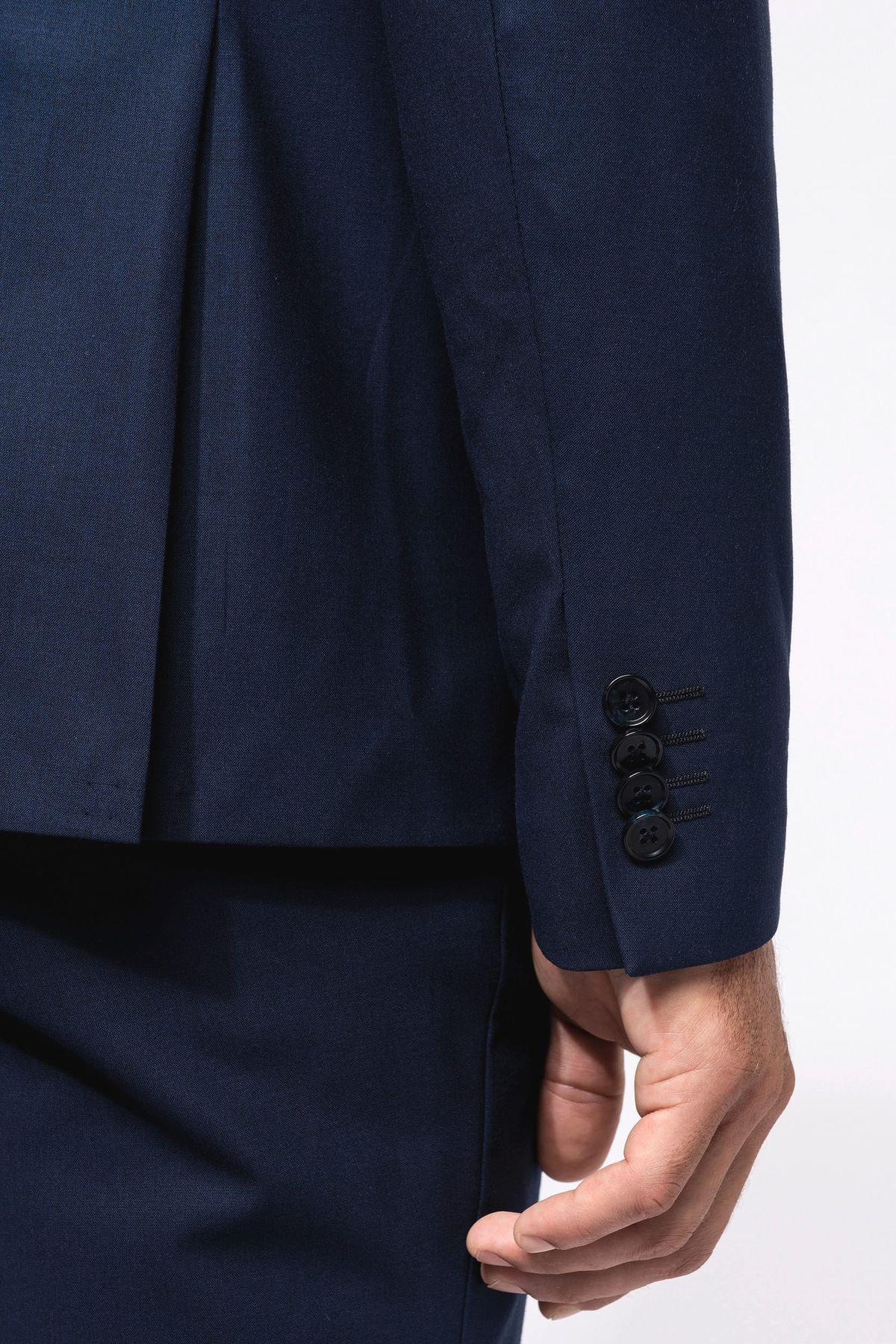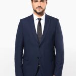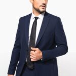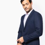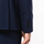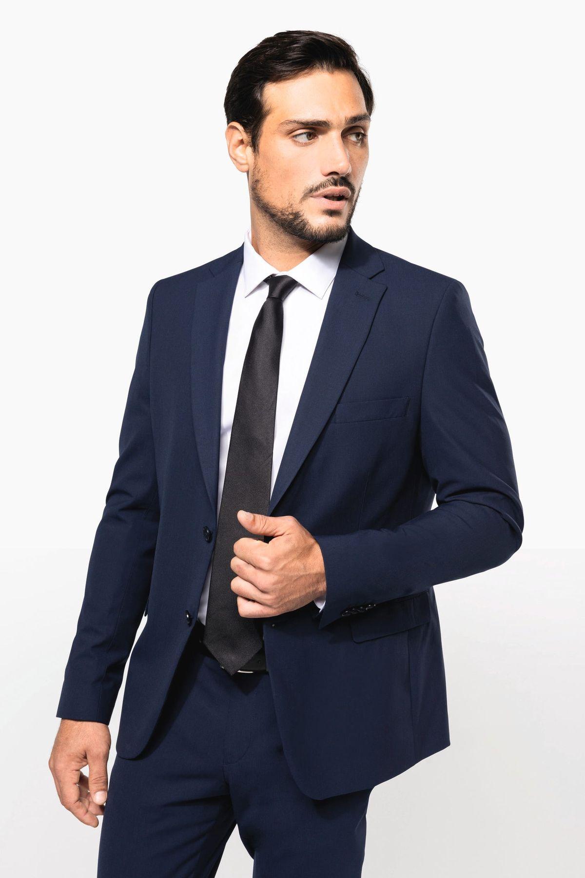 50% polyester / 23% viscose / 22% laine / 5% élasthanne. Doublure en twill (100% polyester) ton sur ton ton. Coupe ajustée. Veste à deux boutons ton sur ton. Deux poches passepoilées avec rabats, ainsi qu’une poche poitrine passepoilée côté cœur. Fausse boutonnière ton sur ton sur revers de col. Empiècement côté qui vient donner la forme au produit. Bride de suspension en satin à l’encolure. Couture milieu dos avec deux fentes bas de vêtement. Bas de manches avec fausse fente à 4 boutons ton sur ton. Finition avec un biais contrasté, pour les deux poches poitrines intérieures. Une poche téléphone et une poche ticket passepoilées ton sur ton intérieur gauche du vêtement au porté. Zip de personnalisation côté gauche au porté. Pas d’étiquette de marque, uniquement une puce de taille pour faciliter la personnalisation.