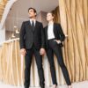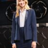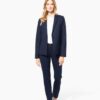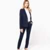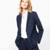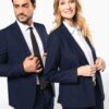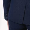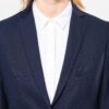 50% polyester / 23% viscose / 22% laine / 5% élasthanne. Doublure 100% twill polyester ton sur ton avec plis d’aisance. Veste fermée par 1 bouton. 2 poches passepoilées devant. Une poche passepoilée intérieure côté cœur. Bas de manche avec 3 boutons. 1 fente d’aisance au bas du dos. Pas d’étiquette de marque, uniquement une puce de taille pour faciliter la personnalisation.