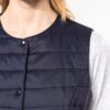 100% polyamide. Coupe ajustée. Rembourrage intérieur en Thinsulate™. Découpe avec 2 poches côtés et zip invisible. Fermeture boutons pressions ton sur ton. Zip de personnalisation intérieur côté gauche. Gilet sans manche léger afin de pouvoir le porter sous une veste. Pas d’étiquette de marque, uniquement une puce de taille pour faciliter la personnalisation.