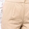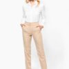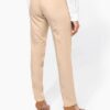 55% viscose / 42% polyester / 3% élasthanne. Tissu twill. Deux poches italiennes devant. Deux fausses poches passepoilées au dos. Braguette avec zip en nylon, deux crochets en métal et un bouton sous patte. Deux plis d’aisance devant avec un pli permanent jambe. Ceinture dos élastiquée pour plus de confort. Finition ceinture intérieure en matière principale avec une bordure en biais ton sur ton. Pas d’étiquette de marque, uniquement une puce de taille pour faciliter la personnalisation.