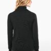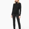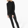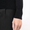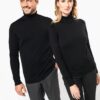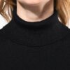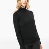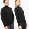100% Mérinos. Laine extra-fine peignée. Jauge 14. Fully-fashioned : tricoté dans la forme et assemblé sur machine de remaillage. Col roulé, poignets et bas du vêtement rib 1 x 1.