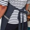 Natural Denim: 44% coton recyclé, 37% polyester recyclé, 19% viscose recyclée.Grey Denim: 55% coton recyclé, 36% polyester recyclé, 9% viscose recyclée.Black Denim: 53% coton recyclé, 41% polyester recyclé, 6% viscose recyclée.Indigo Denim: 58% coton recyclé, 36% polyester recyclé, 6% viscose recyclée. Coton recyclé, polyester recyclé, fibres mélangées fabriquées à partir de denim recyclé. Poches latérales obliques avec bordure contrastée. Bande de cou nouée réglable. Surpiqûres contrastées.