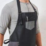 100% coton denim avec une finition acrylique “effet huilé” longue durée. Effet denim teint grâce aux fils tissé-teint. Tablier à bavette au style vintage avec empiècements en tissu contrasté et détails en similicuir pour une apparence à la fois authentique et tendance, prisée dans bon nombre d’établissements. Liens d’attache en similicuir. Lien d’attache avec boucle ajustable au niveau du cou. Dimensions : H 86 cm x L 72 cm.