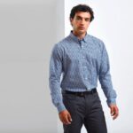 65% polyester / 35% coton popeline tissé-teint. Chemise à manches longues avec boutons aux manches. Bouton au col. Lavage domestique à 40°C.