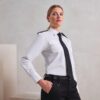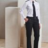 65% polyester / 35% coton, popeline simple. Manches longues. 2 poches avant à rabat, boutonnées. Emplacement stylo sur côté gauche. Patte d’accrochage pour galons (galons non fournis). Entretien facile.