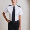 65% polyester / 35% coton, popeline simple. Manches courtes. 2 poches avant à rabat, boutonnées. Emplacement stylo sur côté gauche. Patte d’accrochage pour galons (galons non fournis). Entretien facile.